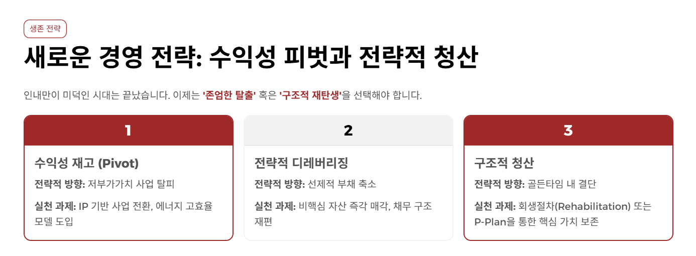 전략적 디레버리징(Strategic Deleveraging): 금리가 더 오르기 전에 비핵심 자산을 매각하고 채무를 축소하십시오. 그것이 회사를 살리는 가장 '공격적인' 방어입니다.