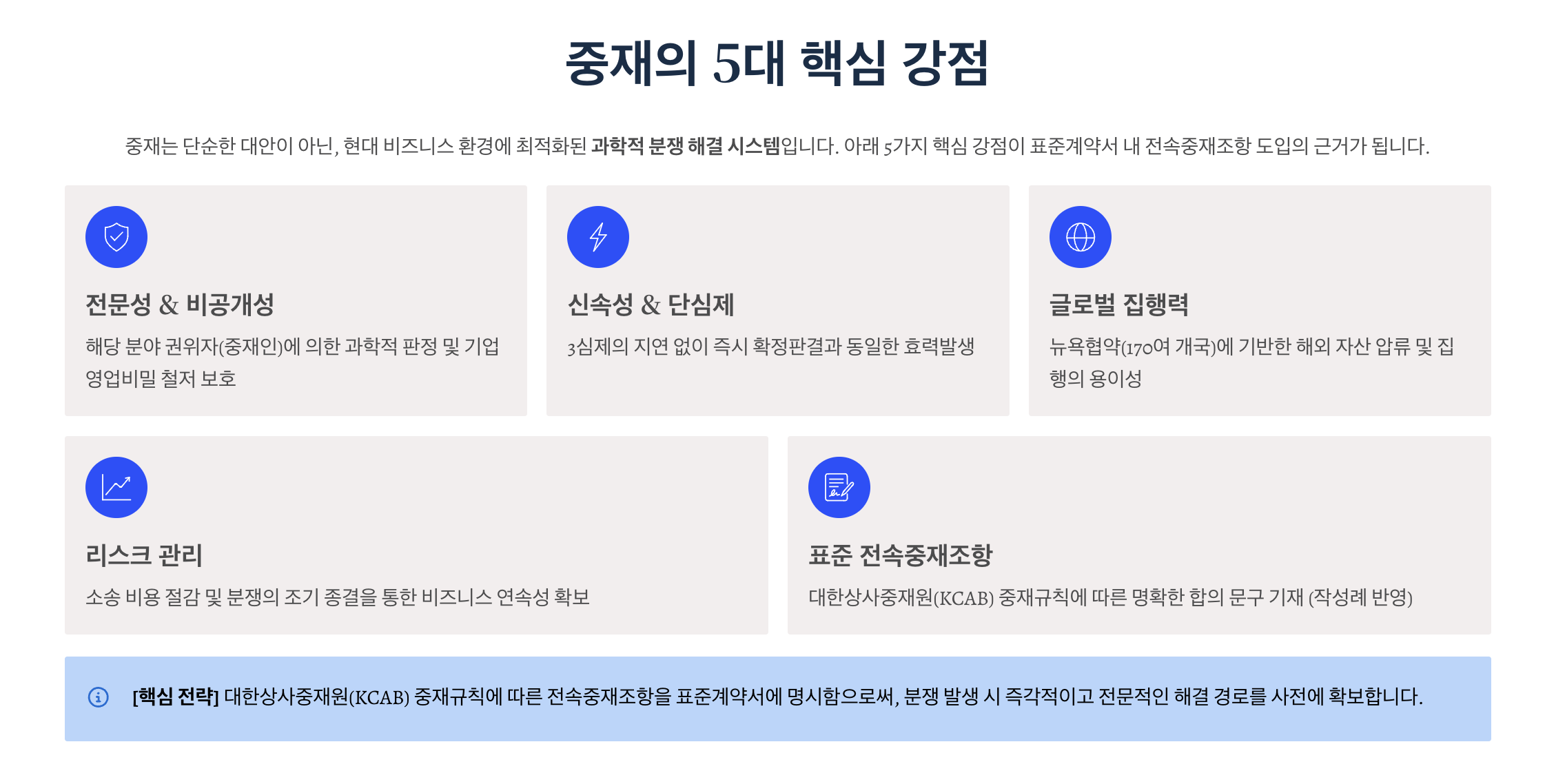 이제 공정거래위원회나 공공기관이 앞장서서 표준계약서에 전속국내중재 조항을 편입시키는 시대가 다가오고 있습니다. 이는 단순한 서식의 변화가 아닙니다. 분쟁 해결의 기본값(Default)이 소송에서 중재로 이동하는 거대한 지각변동입니다.