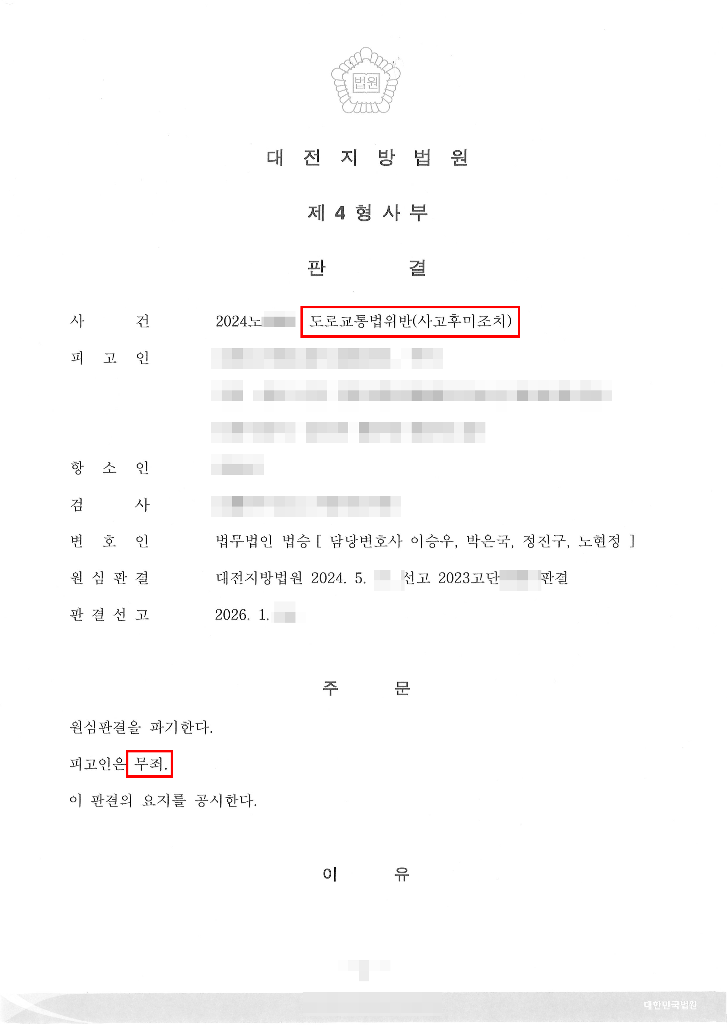 재판부는 판결문에서, 사고 당시 운전자가 의뢰인이라는 점이 합리적 의심 없이 증명되었다고 보기 어렵고, 수사 단계의 자백만으로는 범죄사실을 인정하기에 부족하다고 판단하였습니다.