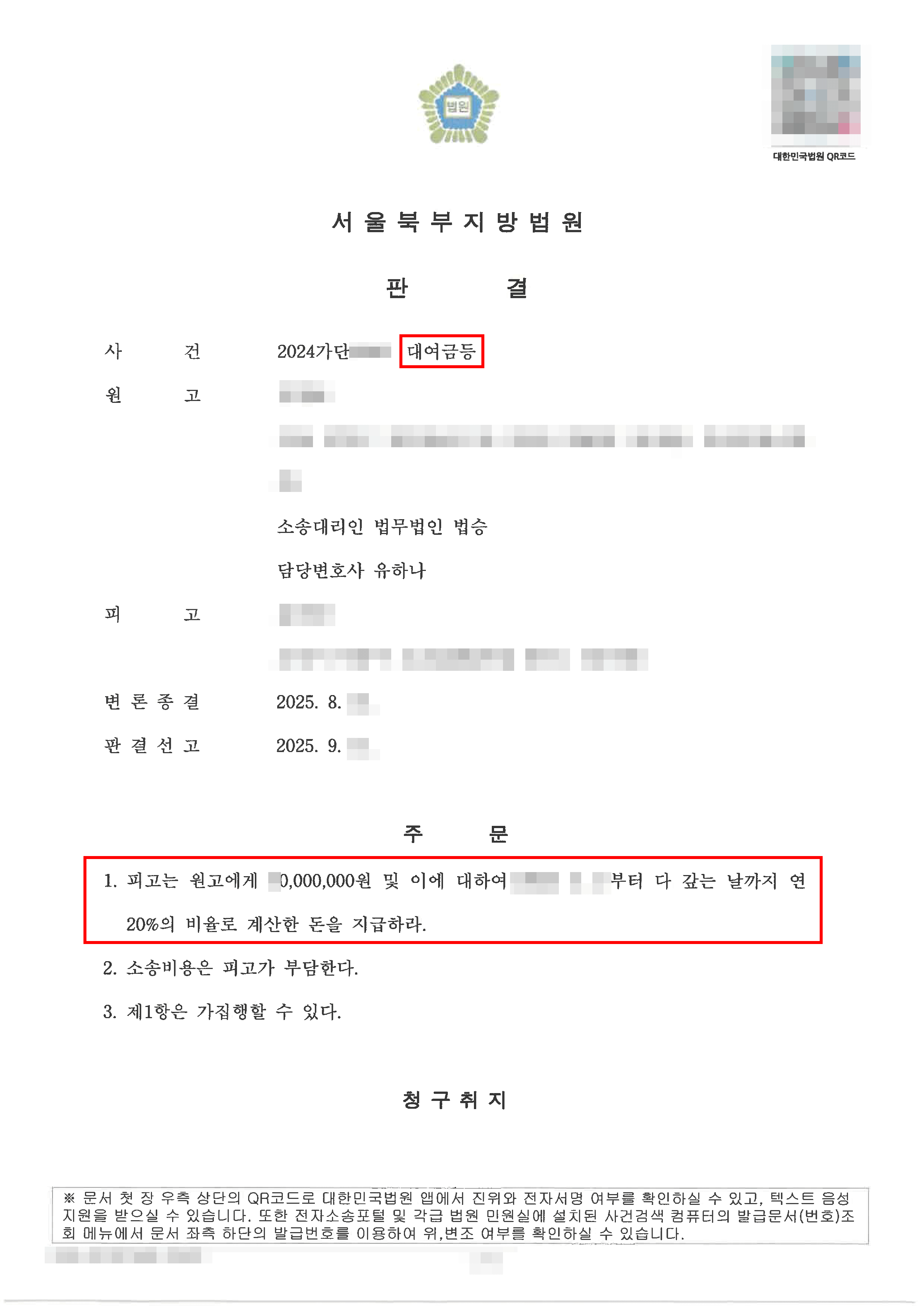 전부 승소 | 회사 대표에게 대여한 돈과 퇴직금이 포함된 약정금을 청구하여 전부 인정받은 사례