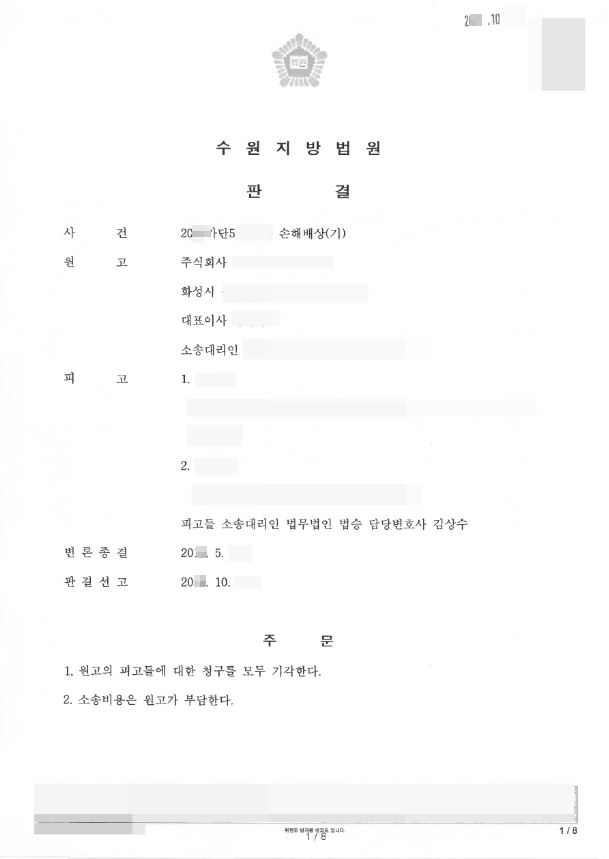 이러한 법승 변호인의 조력으로 원고의 청구는 전부 기각되었습니다.
