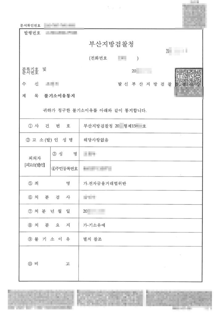 그 결과 검찰은 법무법인 법승 부산사무소 소속 변호인들의 의견을 받아들여 의뢰인의 전자금융거래법 위반 혐의에 대해 ‘기소유예’ 처분을 결정해주었습니다.
