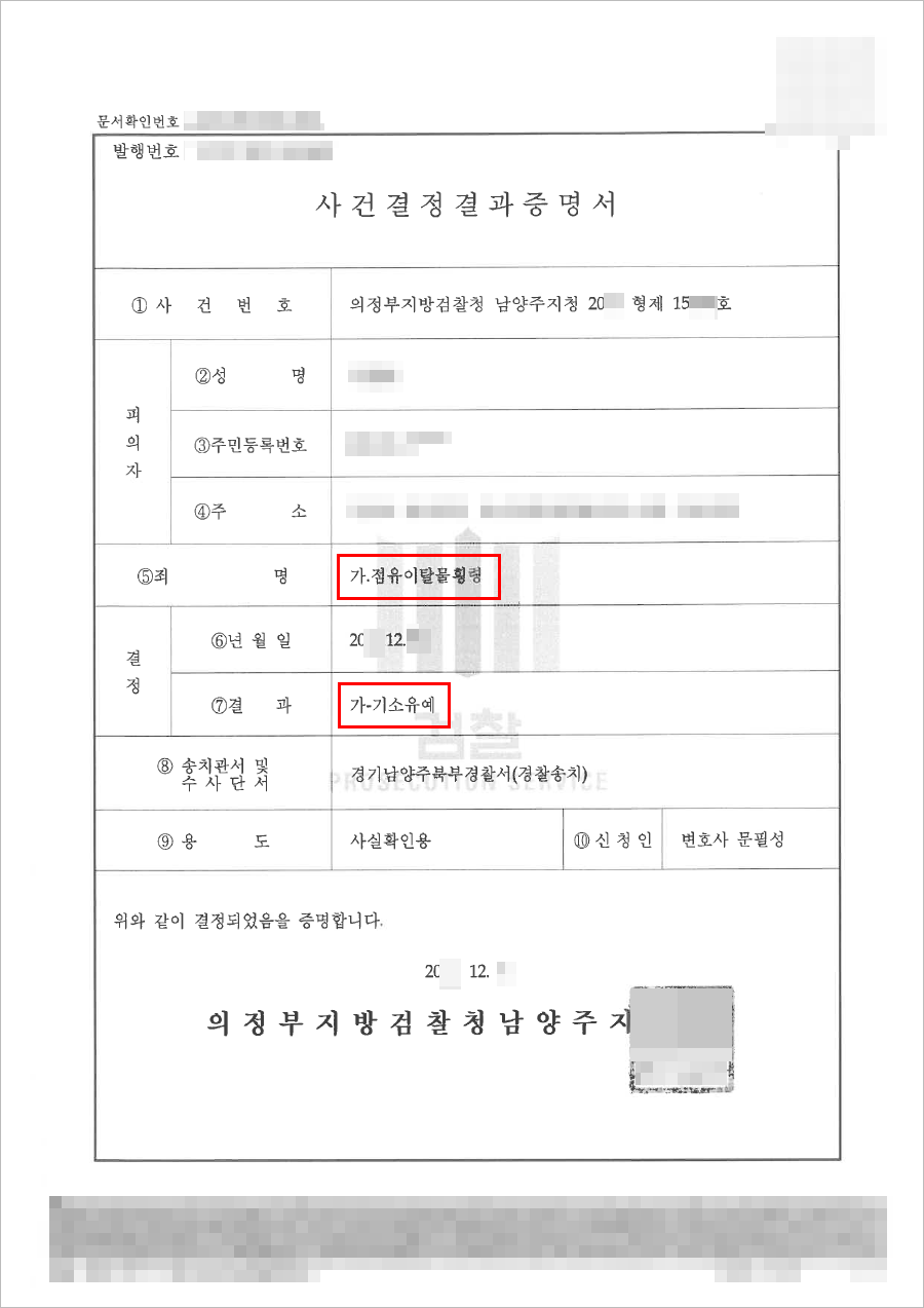 남양주형사전문변호사, 결과 |그 결과 검찰은 법승 변호인 의견을 반영하고 사건에 대한 여러 참작할 정황을 인정하여 의뢰인 혐의에 대한 기소유예 처분을 결정하였습니다.