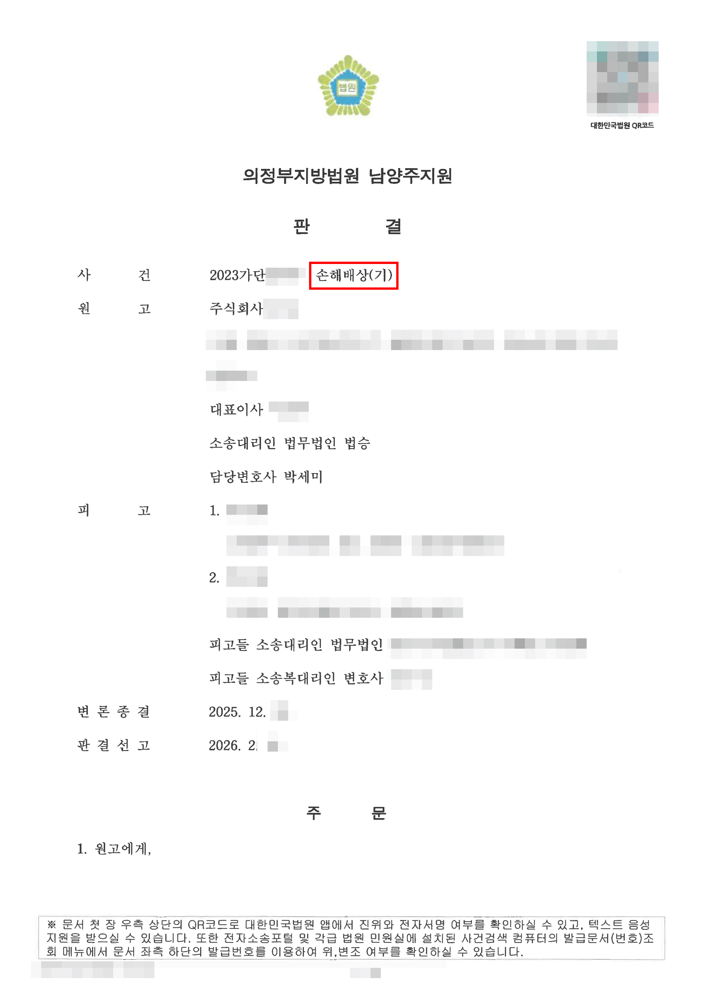 경제지능 / 민사, 가사 / 민사승소