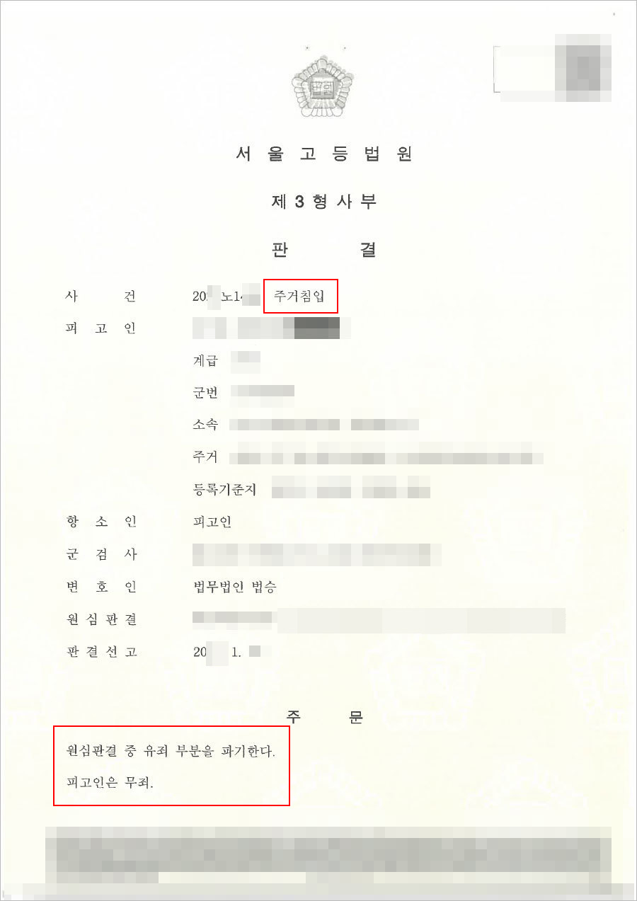 이에 1심 재판부는 2회 중 앞선 주거침입을 무죄로, 뒤의 주거침입을 유죄로 판단하였으나 판결에 불복해 항소하여 항소심의 단계에 있는 상황이었습니다.