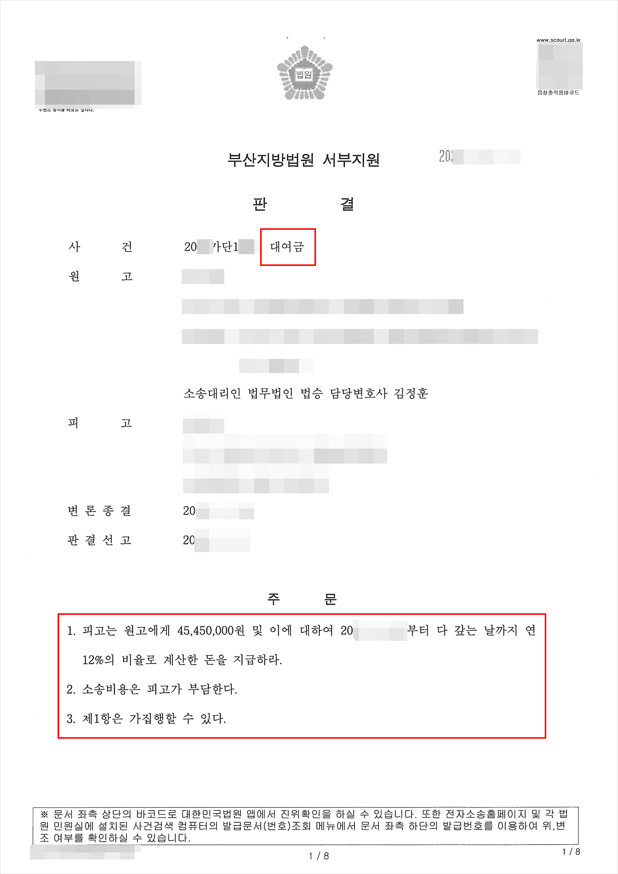 이에 재판부는 원고(의뢰인) 전부 승소 판결을 하였습니다.