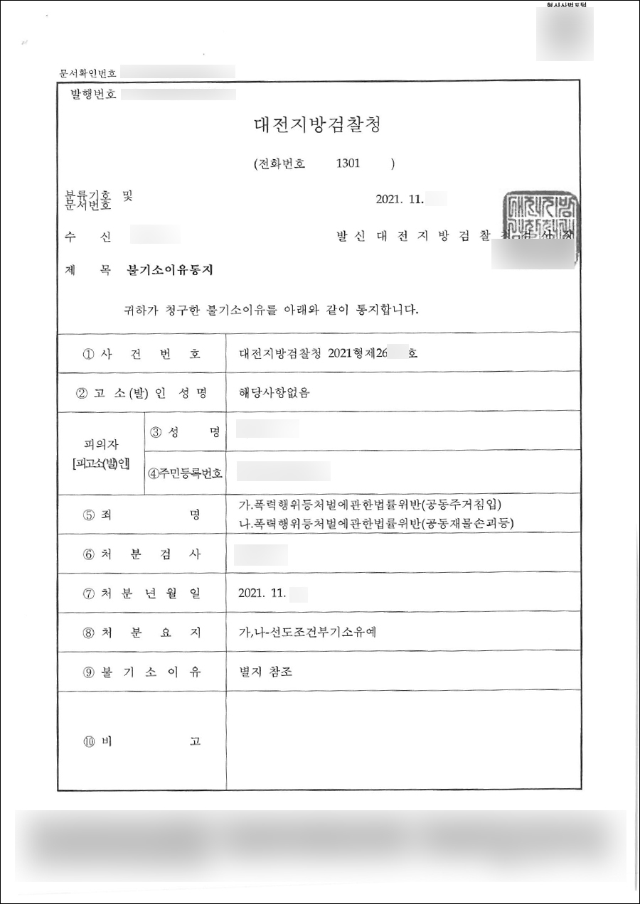 조건부 기소유예 | 공동주거침입 등 - 대전지방검찰청 2021형제26***호