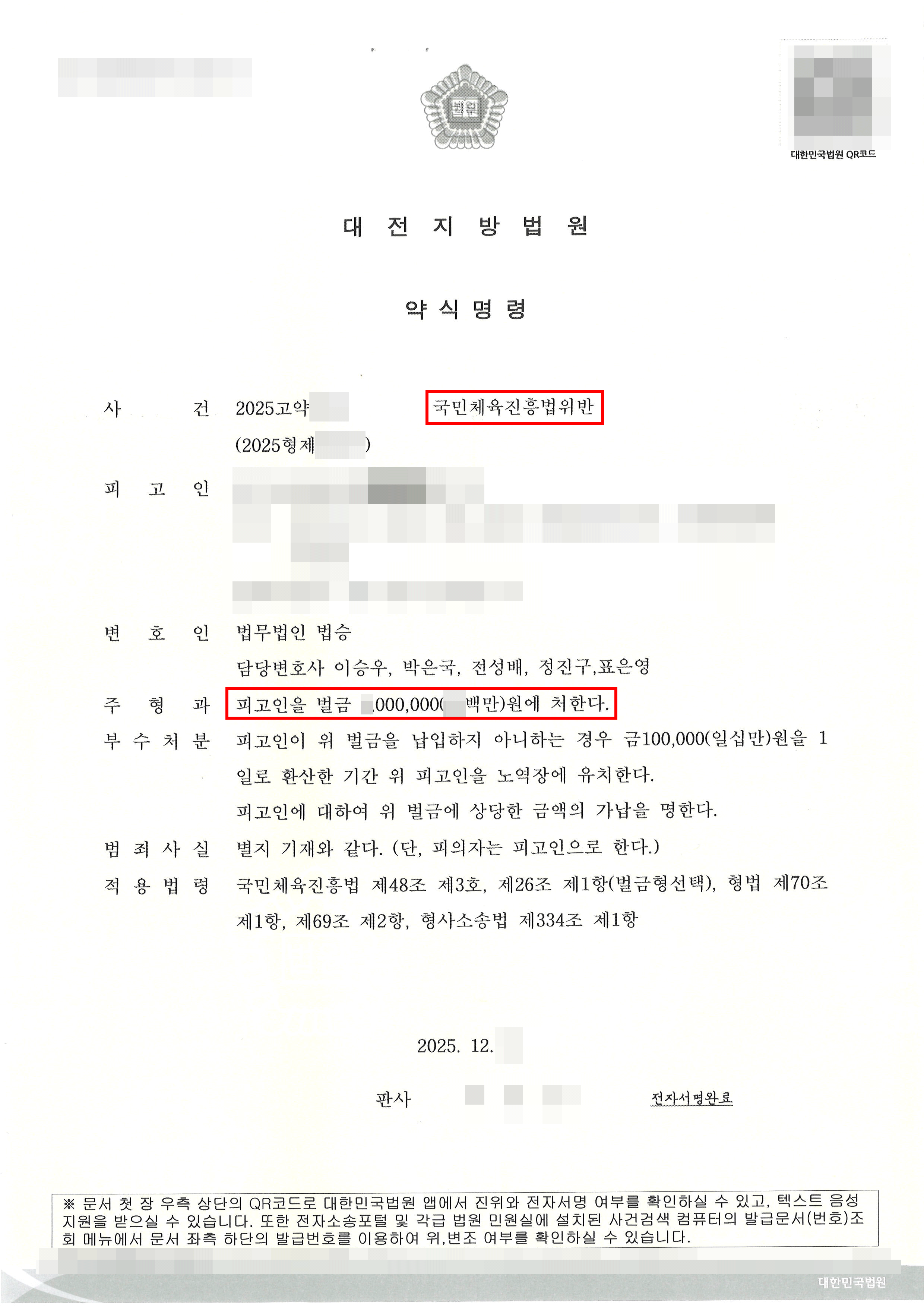 약식명령(벌금형) | 수억 원대 불법 스포츠 도박 혐의, ‘벌금형’ 약식명령으로 선처받은 사례