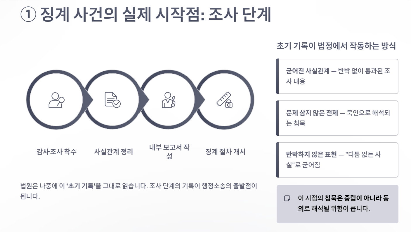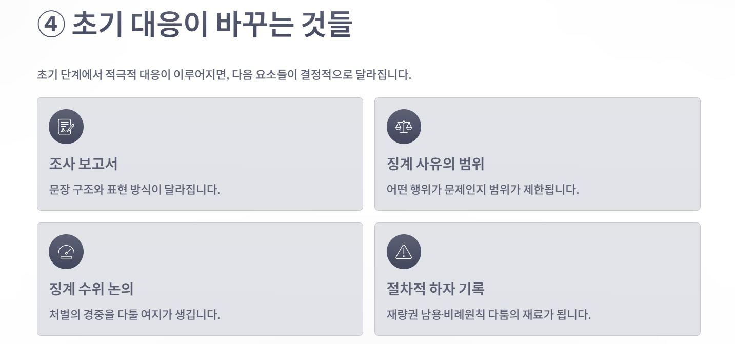 그래서 징계처분은 초기 대응의 밀도가 결과의 상한선을 정합니다.