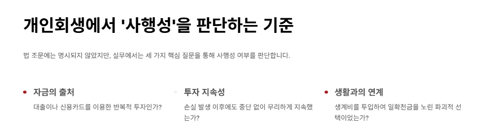 “이 채무를 투자 실패로 볼 것인가, 아니면 사행성 채무로 볼 것인가”