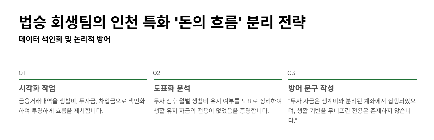 투자를 하는 동안에도 공과금, 월세, 자녀 교육비 등 필수 생활비가 꾸준히 정상적으로 지출되었다는 점을 보여줘야 합니다. 즉, "내 삶을 파괴하면서 투자한 것이 아니라, 가용 가능한 범위 내에서의 실패였다"는 점을 데이터로 입증하는 과정이 필요합니다.