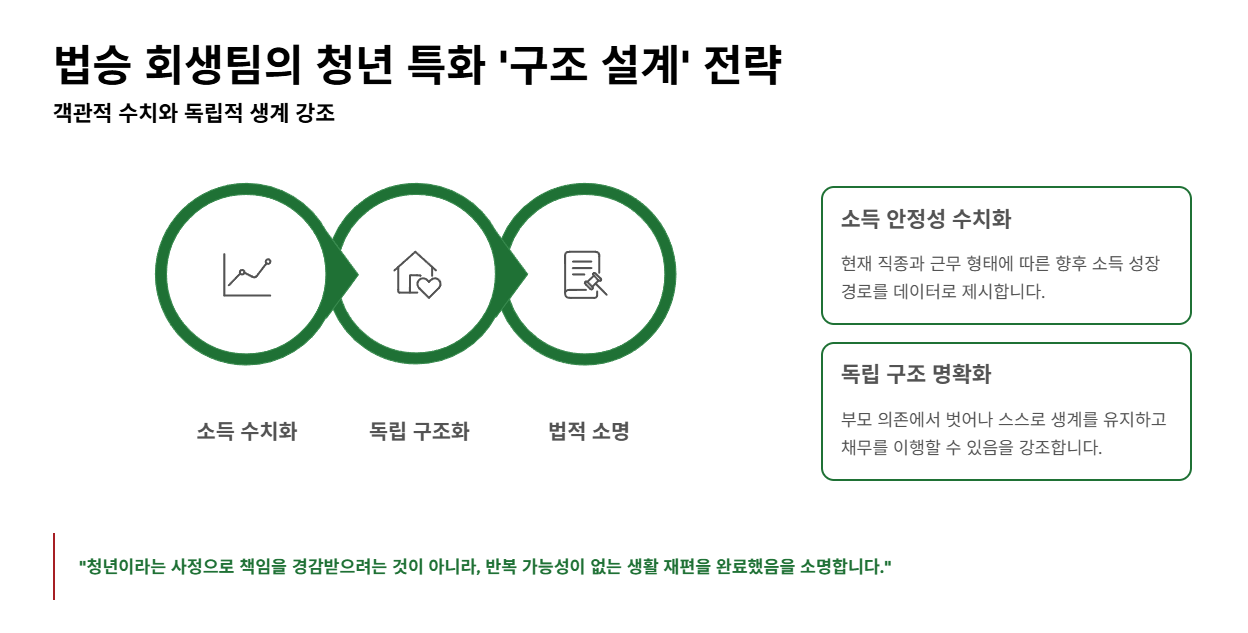 “채무자는 청년이라는 사정으로 책임을 경감받고자 하는 것이 아니라, 반복 가능성이 낮은 구조로 생활을 재편하였음을 소명합니다.”