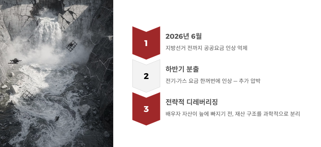 우리가 주목해야 할 변수는 2026년 6월 지방선거입니다. 선거 전까지 억눌려 있던 전기, 가스 등 공공요금 인상분이 하반기에 한꺼번에 분출될 것입니다.