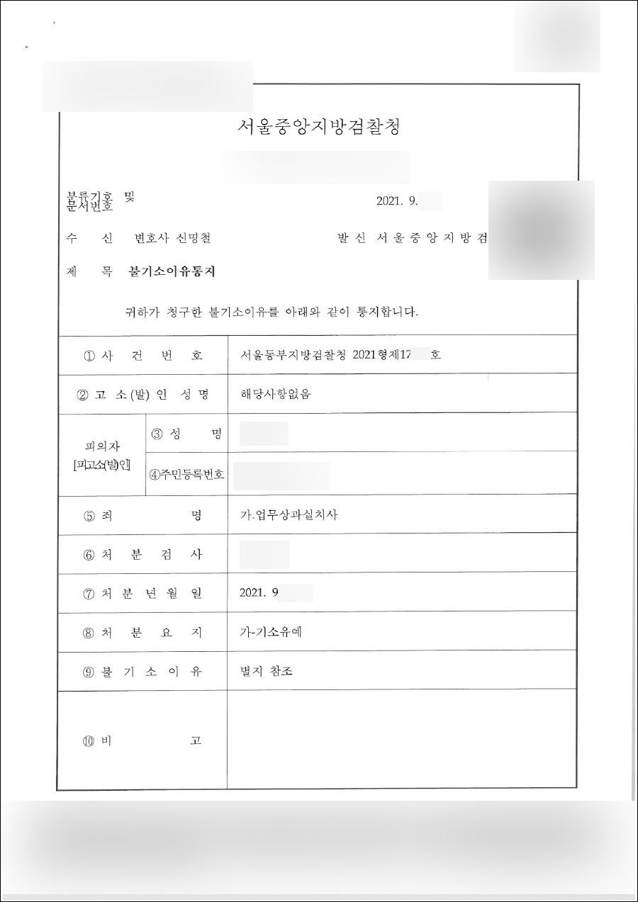 그결과 검찰은 변호인의 의견을 받아들여 의뢰인의 혐의에 대한 기소유예를 결정해주었습니다.