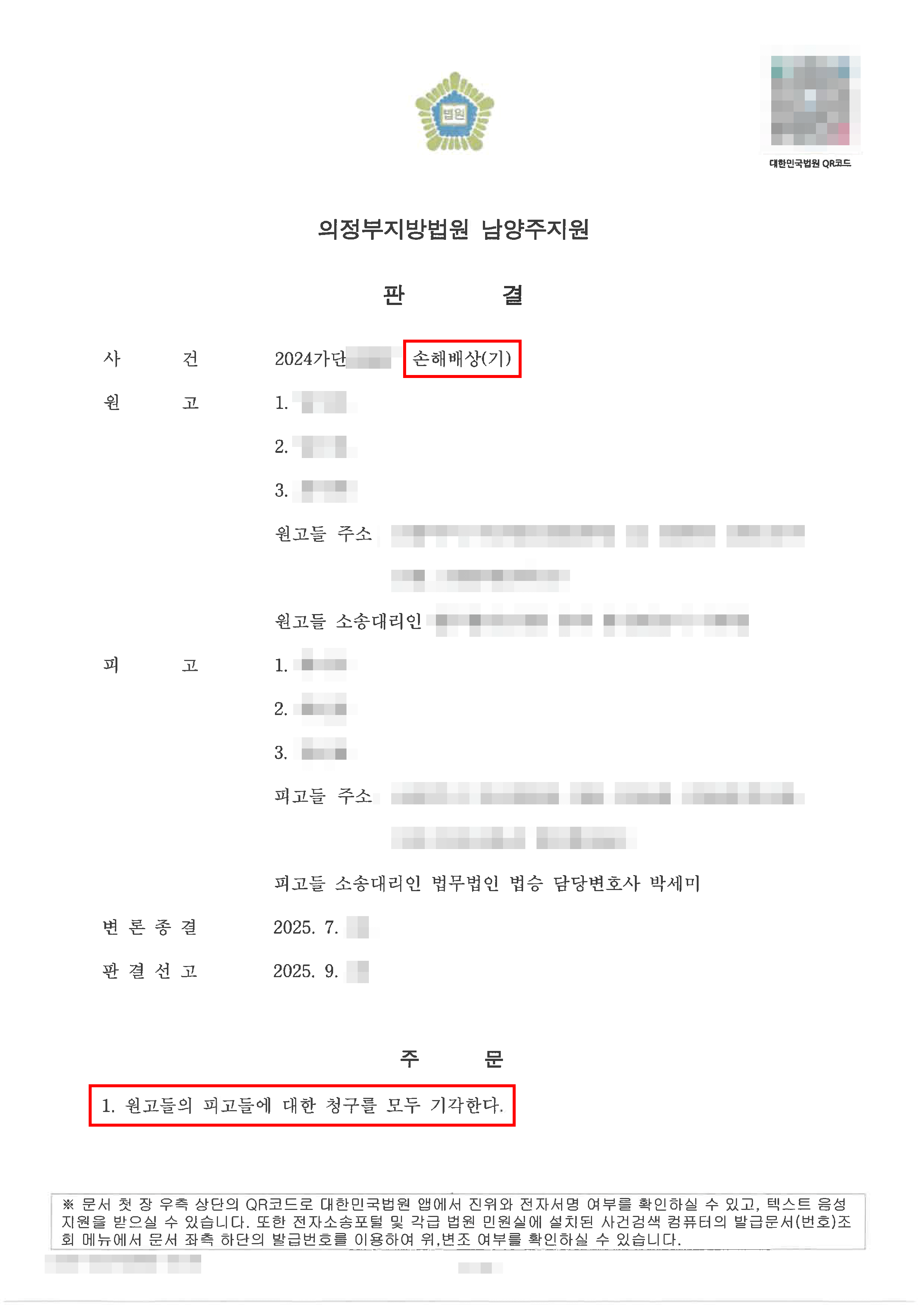 재판부는 원고 대리인의 의견을 받아드려서, 원고 전부 승소 판결을 하였습니다.
