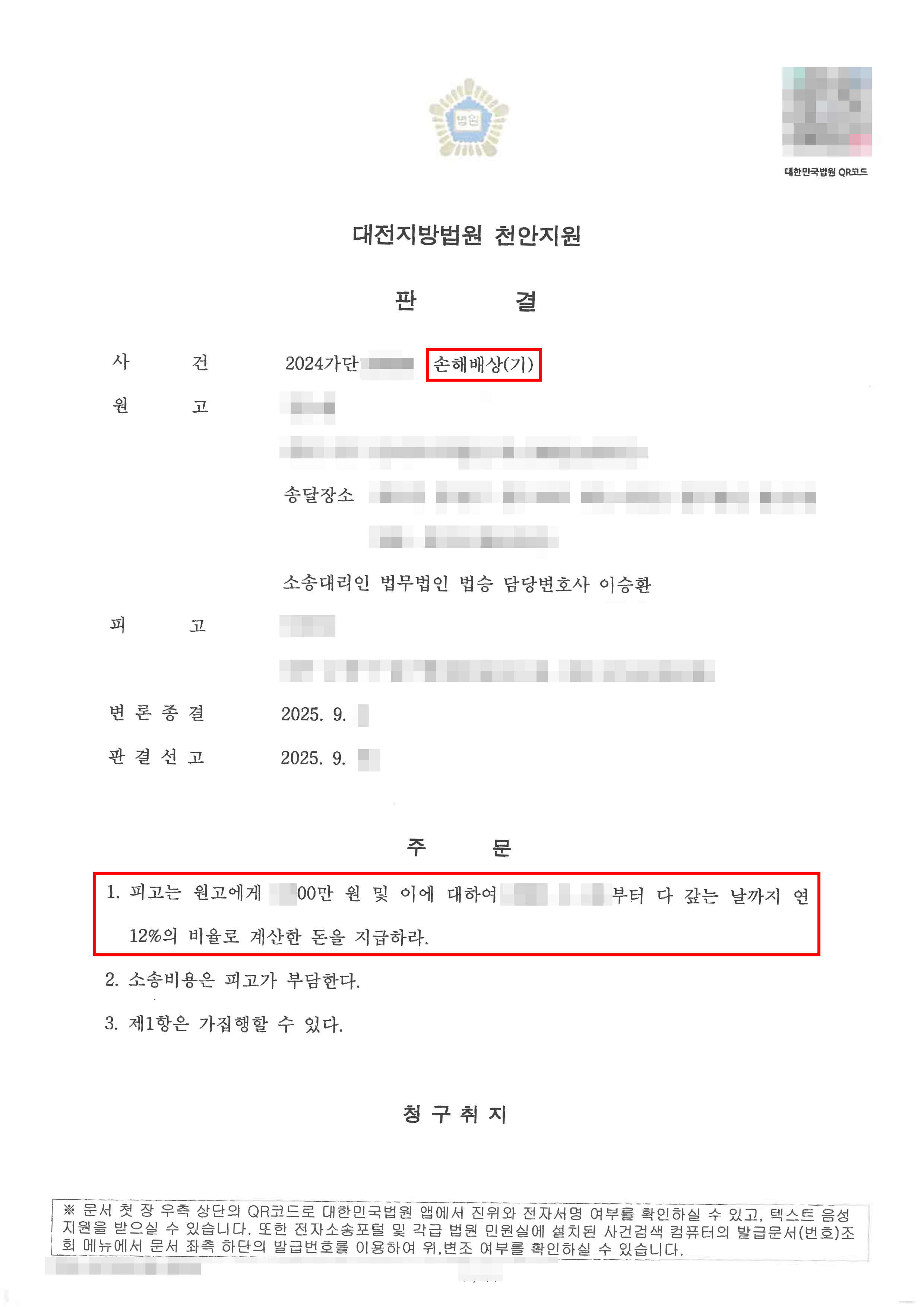이후 위와 같은 사실관계를 법원에 상세히 주장하고 입증하여 원고의 청구취지가 인용될 수 있도록 조력 하였습니다.
