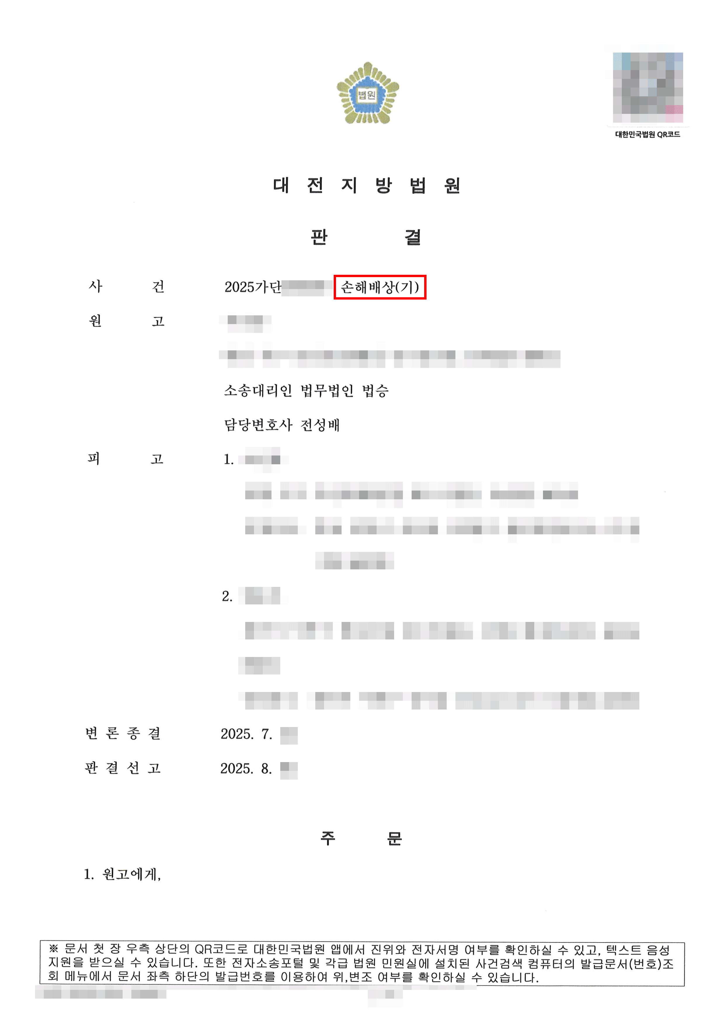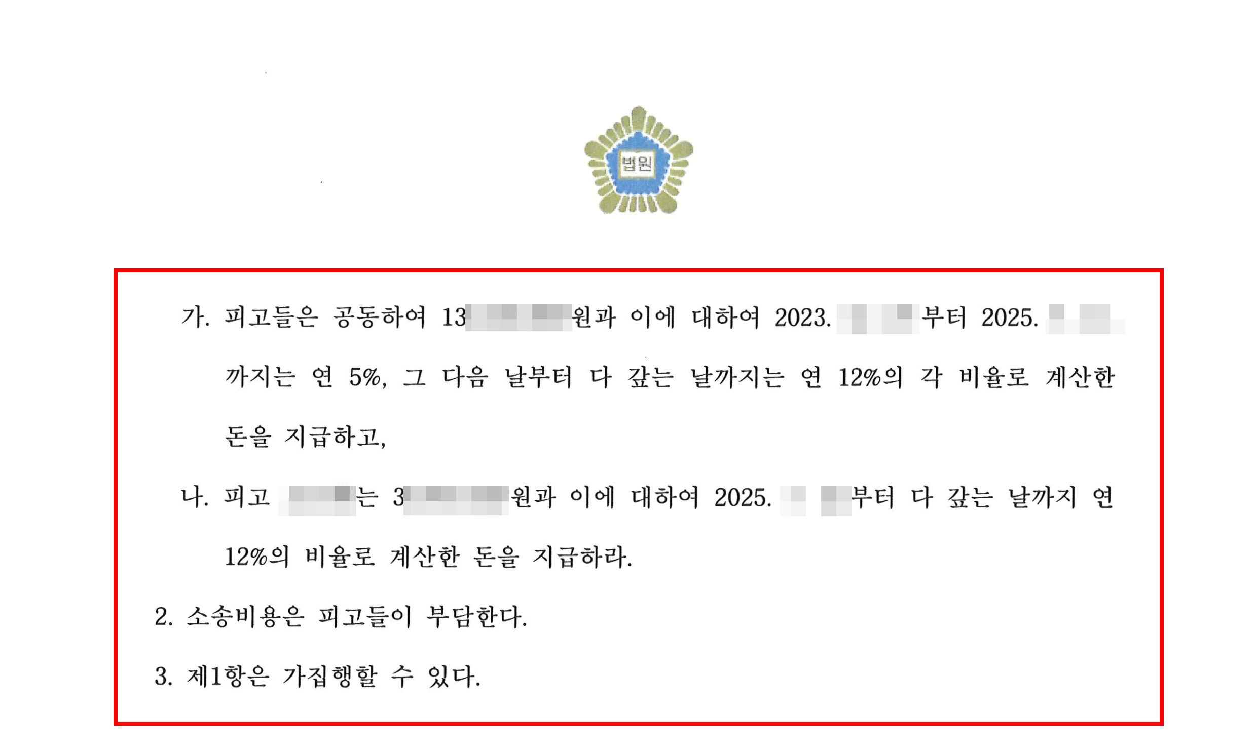 법원은 의뢰인의 주장을 전부 인정해주며 변호사비를 포함한 소송비용도 피고가 부담하라는 원고 전부 승소 판결을 내렸습니다.