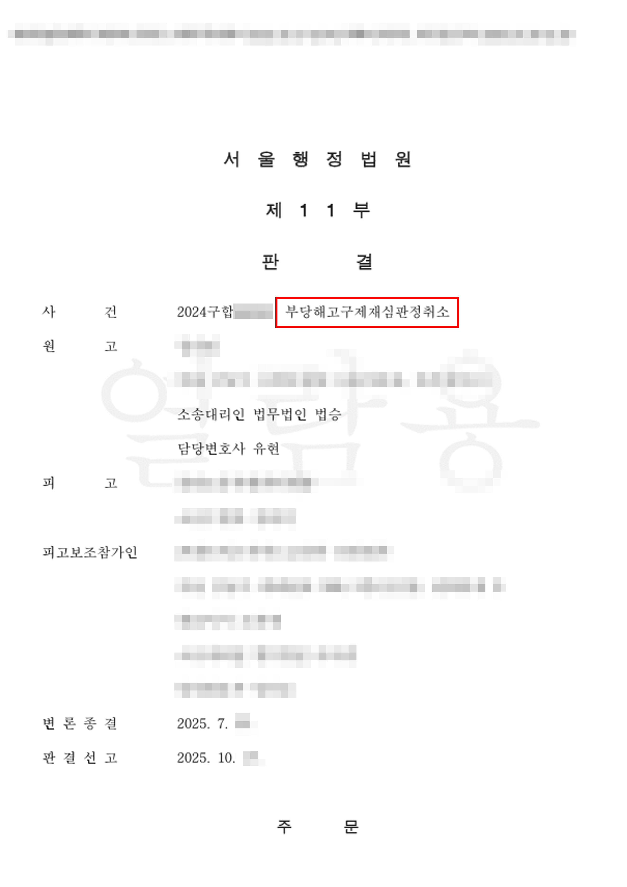 부당해고구제 재심판정이 취소되어 의뢰인의 해고는 부당한 것으로 인정되었습니다.