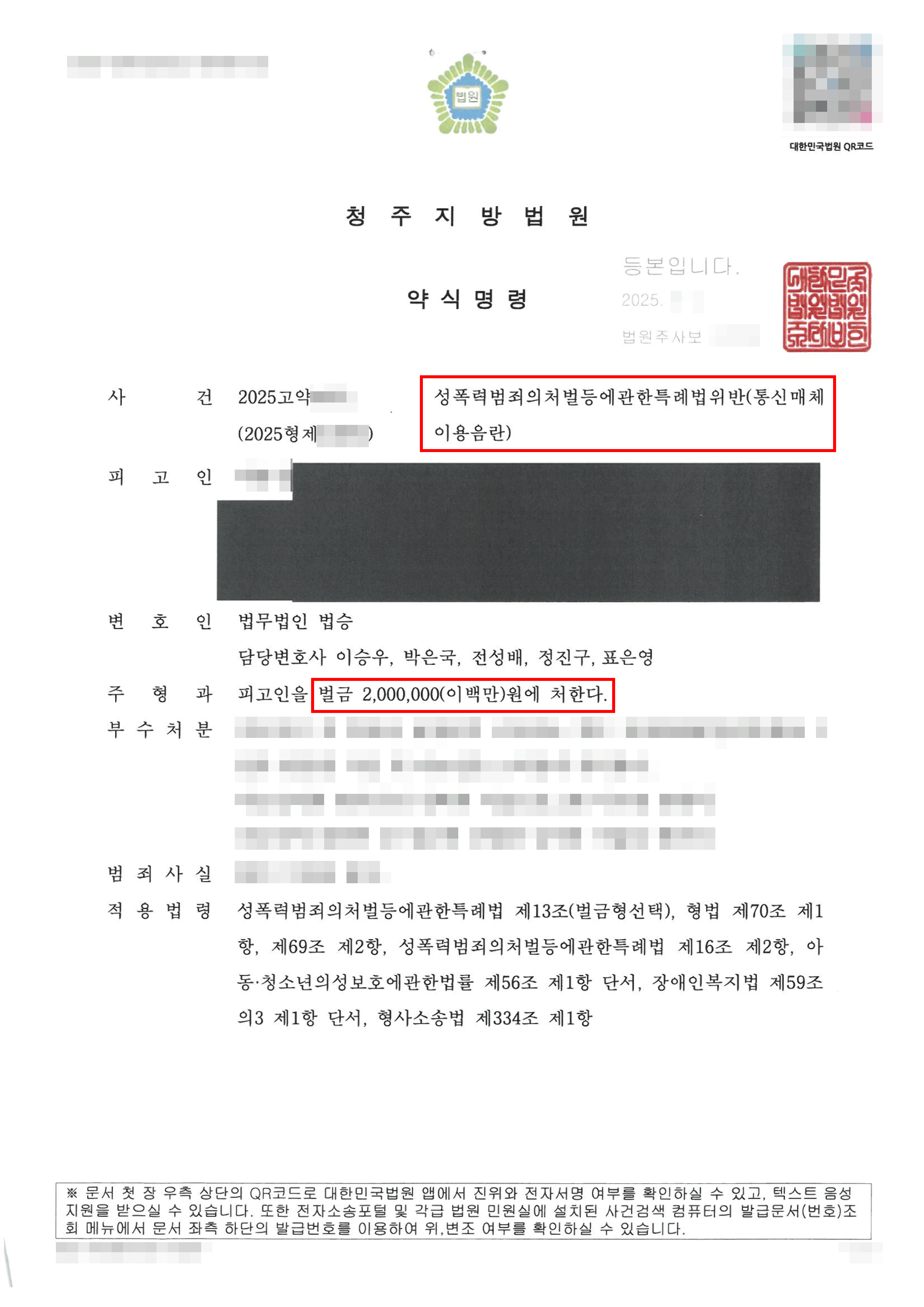그 결과 검찰에서는 의뢰인에 대하여 벌금형으로 약식기소하였고, 법원에서도 동일하게 판단하여 의뢰인은 재판을 받지 않고 사건을 마무리할 수 있었습니다.