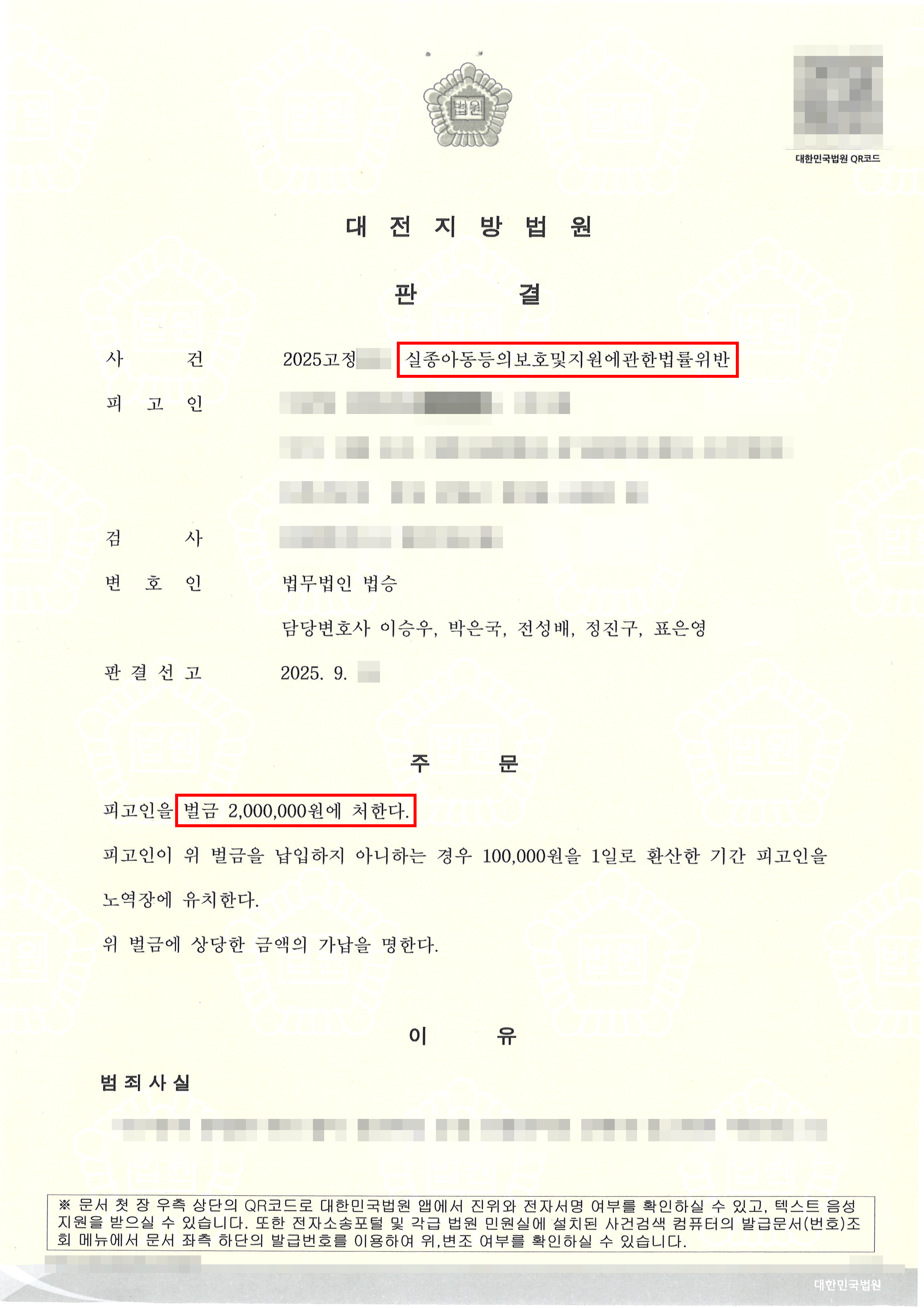 법무법인 법승 대전분사무소는 이처럼 감정적 상황 속에서 발생한 사건이라도 객관적 사실과 법리를 정확히 정리하고, 의뢰인의 선의와 책임감을 균형 있게 조명함으로써 실질적인 선처 결과를 이끌어내는 데 주력하였습니다.