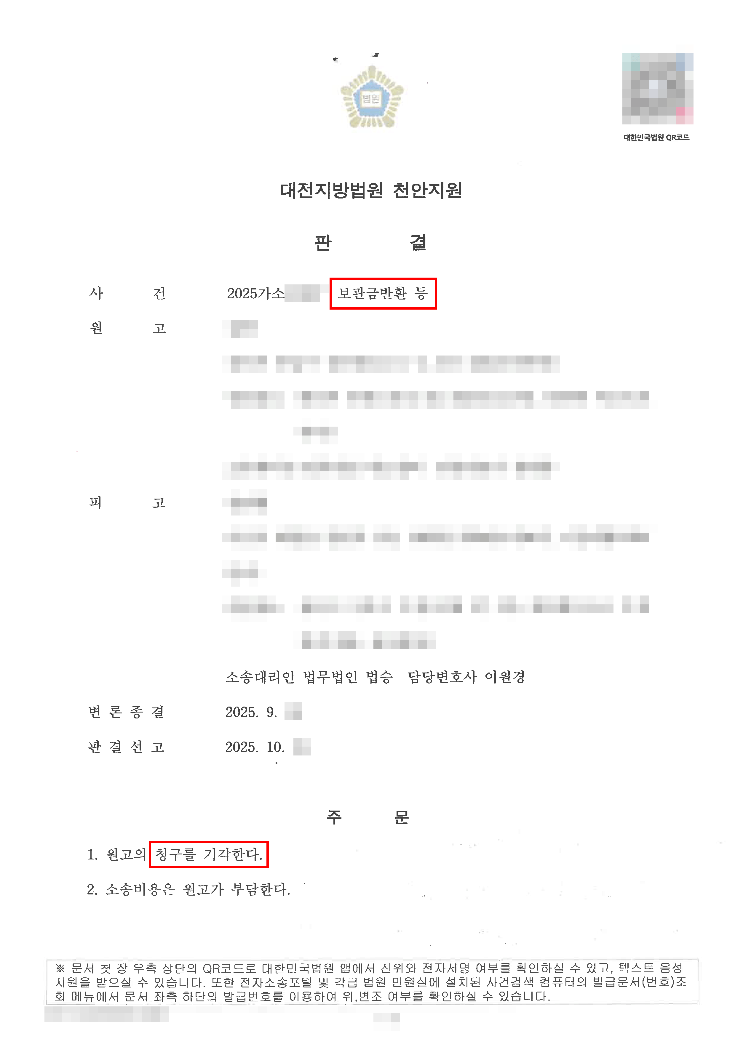 대전지방법원 천안지원은, 원고가 제출한 증거들만으로는 원고의 주장사실을 인정하기에 부족하다고 하여 원고의 청구를 전부 기각하였습니다.