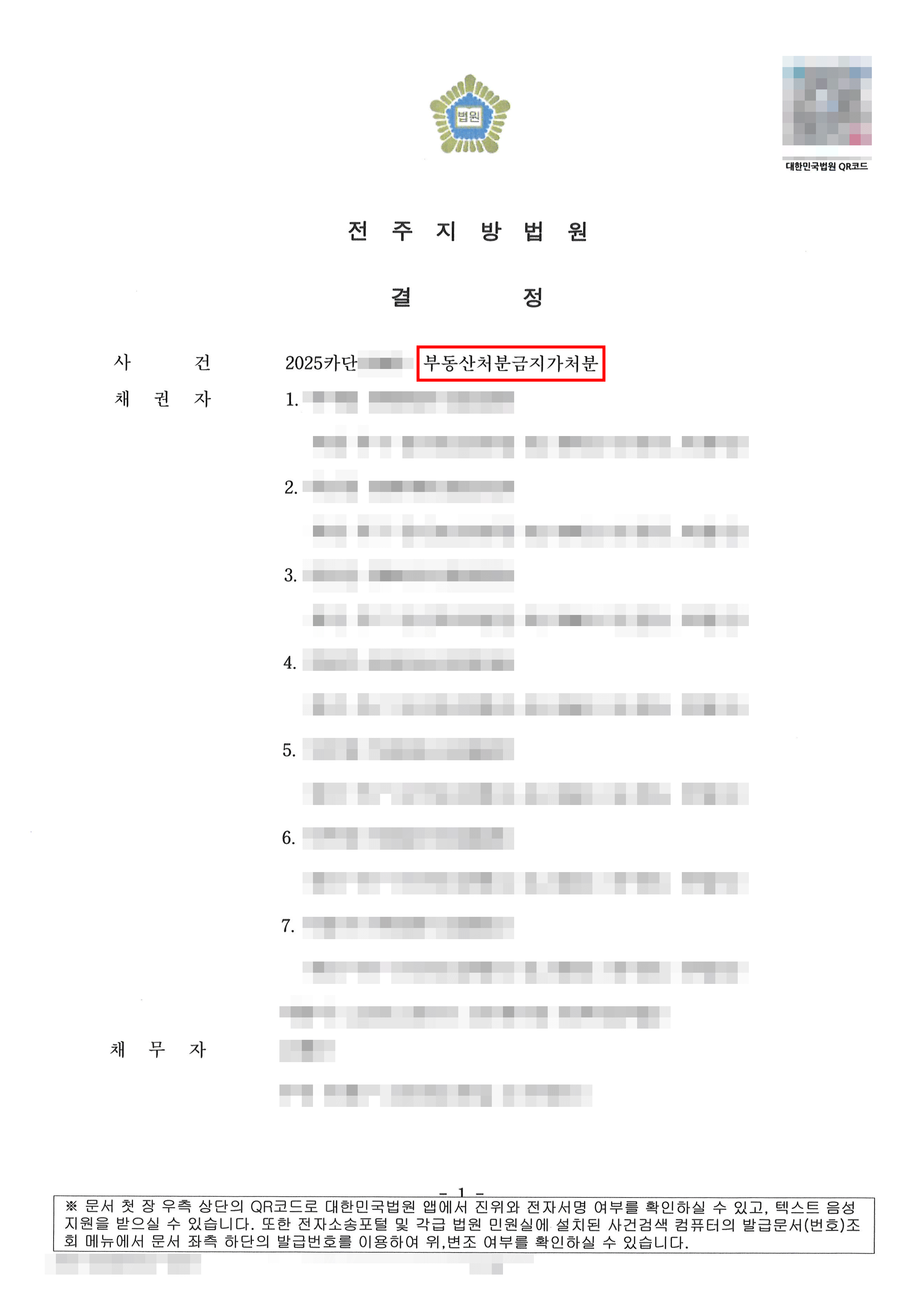 이로써 법원은 채무자가 해당 부동산을 제3자에게 처분할 수 없도록 제한함으로써, 채권자들의 소유권이전등기청구권(점유취득시효권)이 본안 판결 전까지 완벽히 보호되도록 하였습니다.