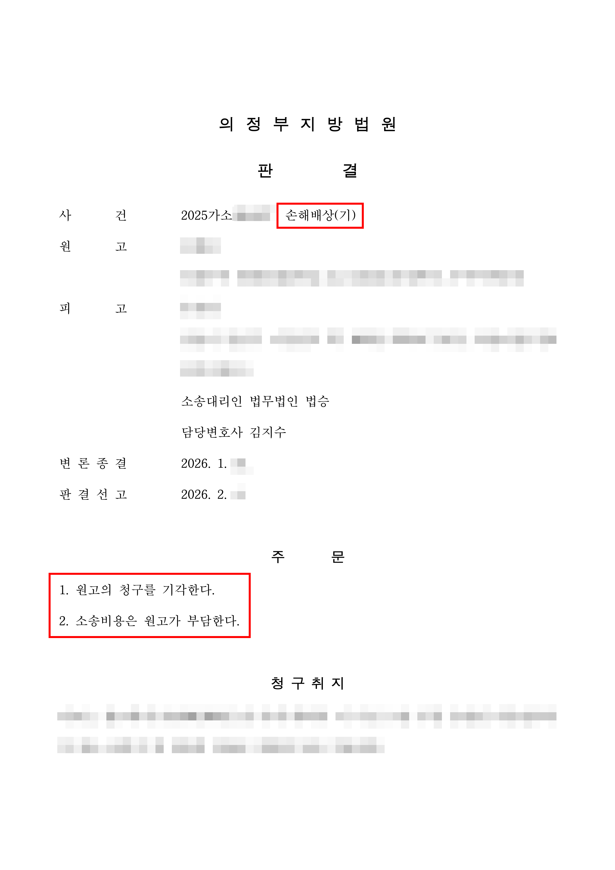 이로써 의뢰인은 상대방이 요구한 금전적 배상 책임에서 완전히 벗어났으며, 소송비용 또한 상대방이 부담하게 되어 법적 분쟁을 승리로 마무리 지을 수 있었습니다.