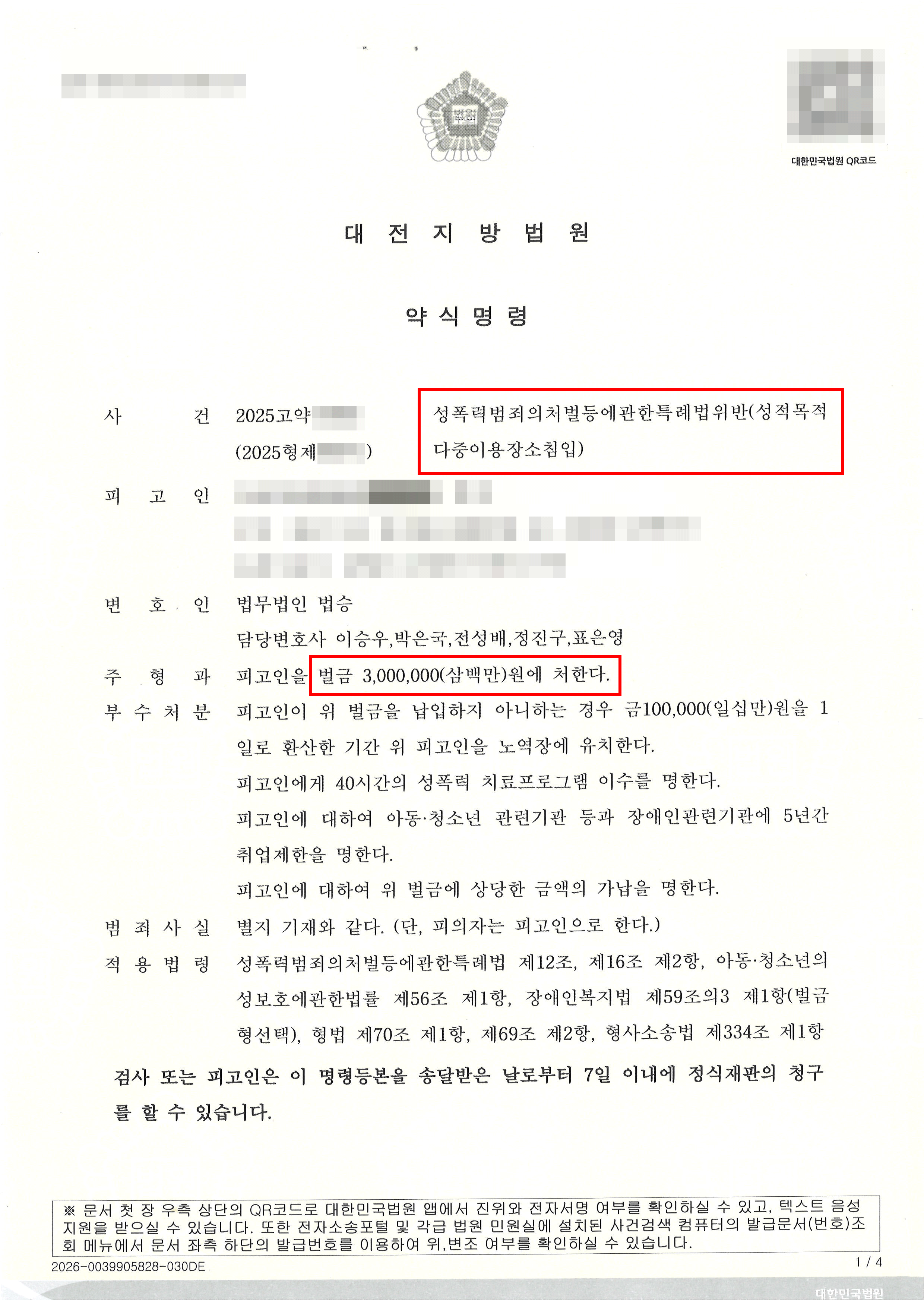 법원은 범행 장소가 여자화장실이라는 점과 과거 동종 전력이 존재한다는 점을 지적하면서도, 피고인의 반성 태도와 치료 노력 등을 참작하여 징역형이나 집행유예가 아닌 벌금형을 받았습니다